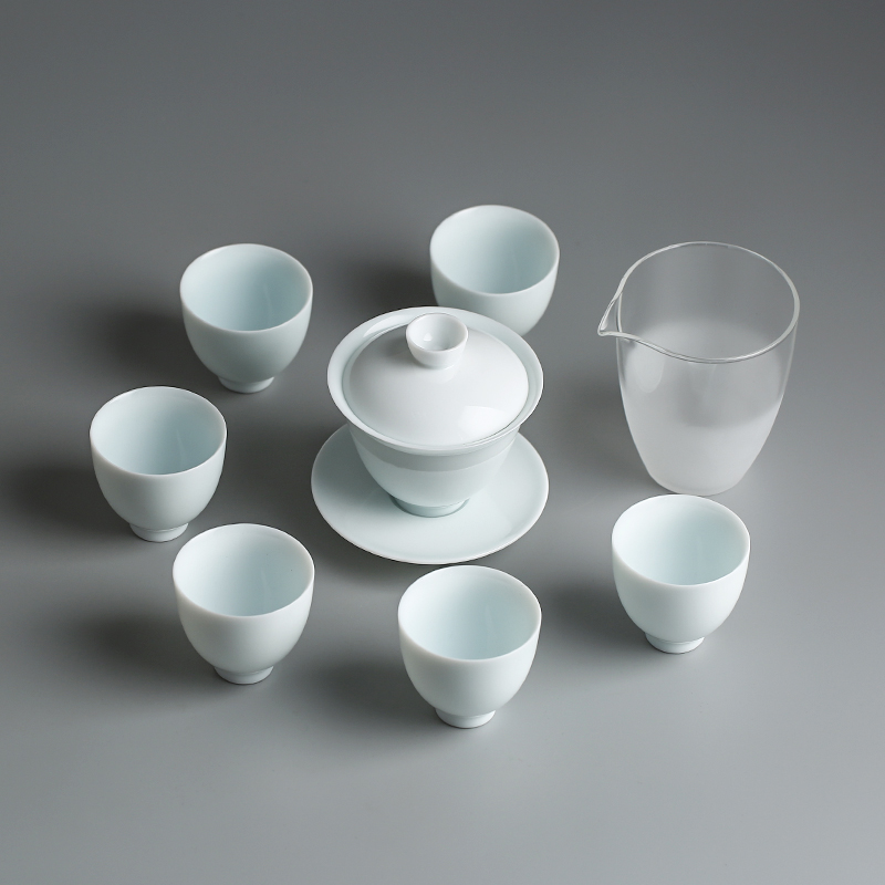 Qifengju hand-painted ceramic cover bowl fair cup cup set combination gift box household kung fu