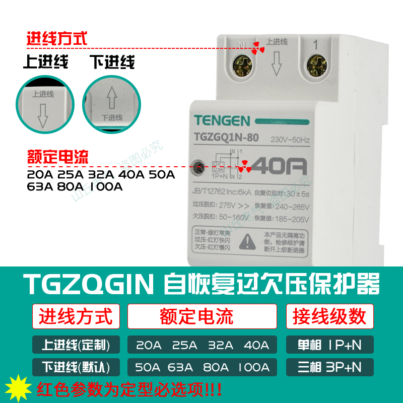 Tianzheng Electric self-recovery overvoltage undervoltage protector TGZGQ1N-806340a household down line outlet