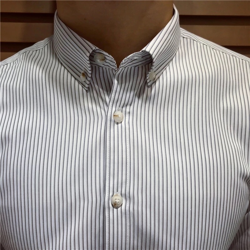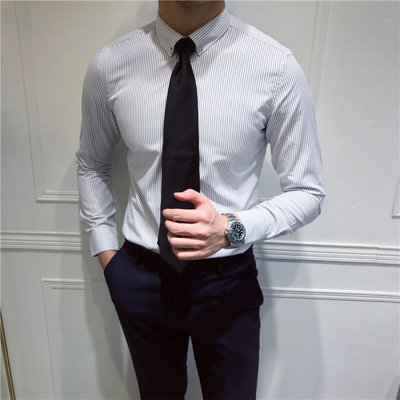 Mr Lu San Men's business slim-fit striped long-sleeved shirt British casual retro shirt Korean version of Japanese trendy men