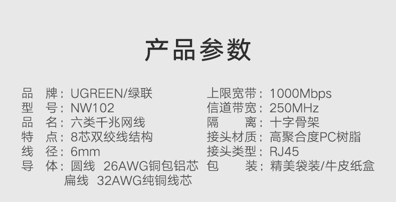 Green union NW102 Super six gigabit home office monitoring room Class 6 network cable Cat6 eight-core twisted pair network cable