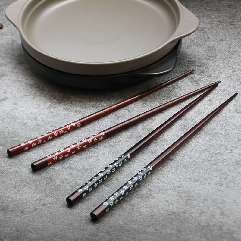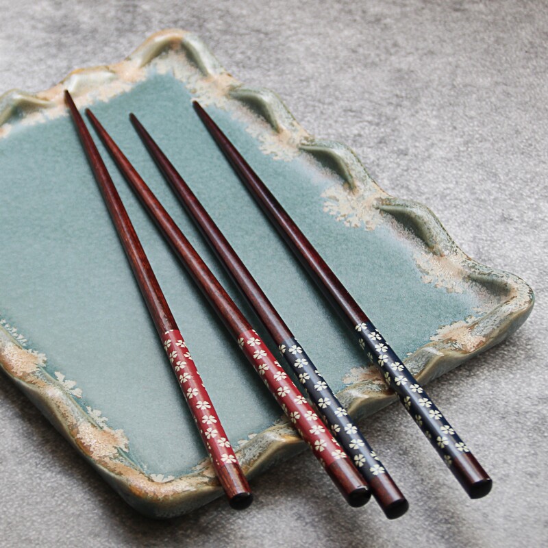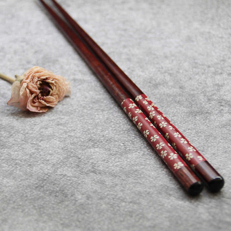 Chopsticks Japanese Floral Sakura Solid Wood Chopsticks Small Fresh Ebony Red Sandalwood Solid Wood Chopsticks Creative Personality Home