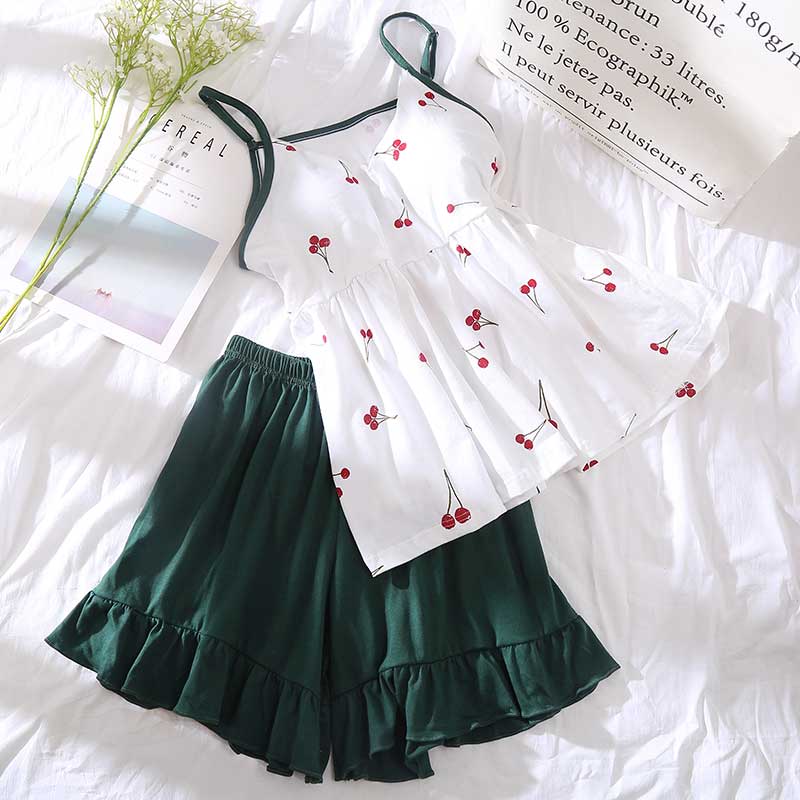 Large size pajamas women's summer suspenders cotton two-piece Korean version sweet and cute fat mm200 catties student home clothes thin