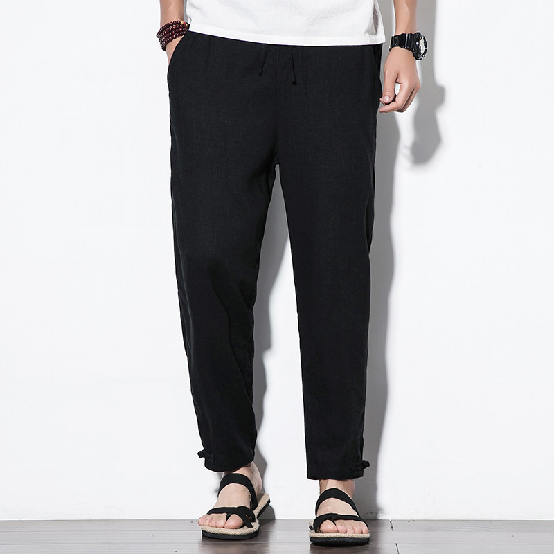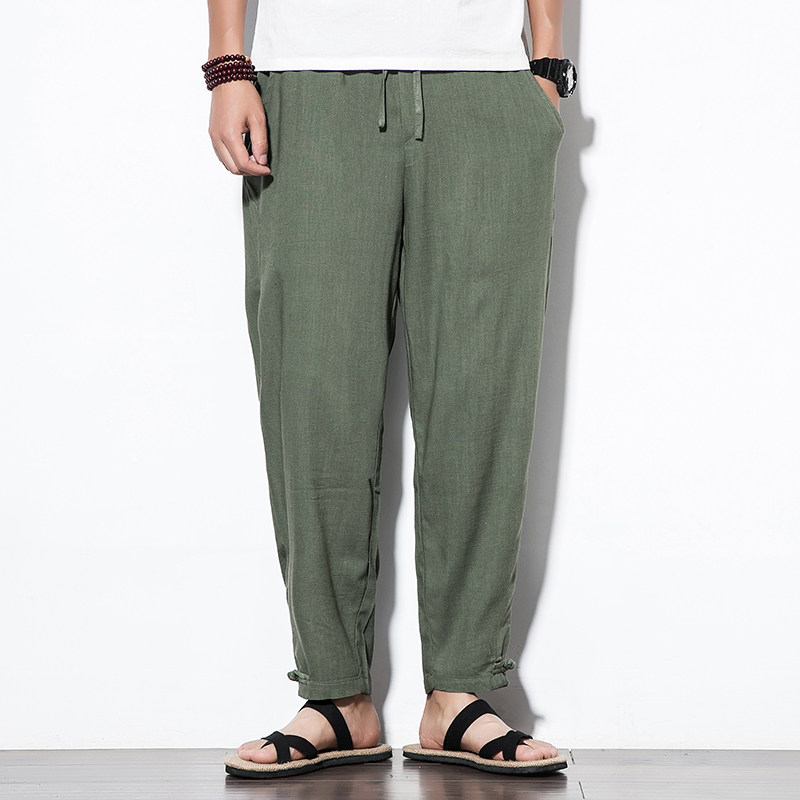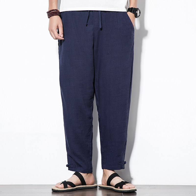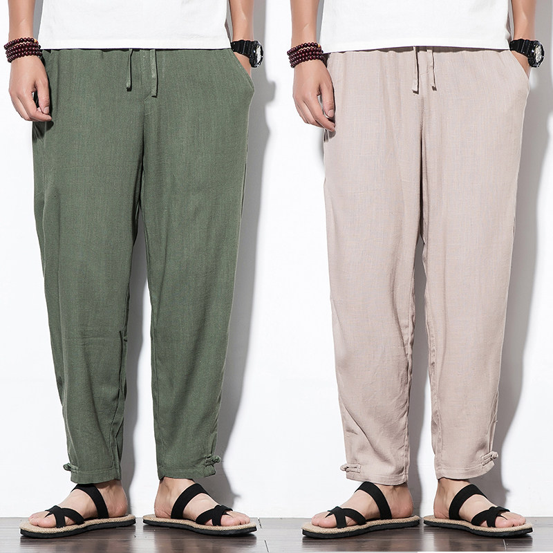 Chinese wind men pants summer thin breathable cotton pants men's linen casual pants large-size loose men's pants