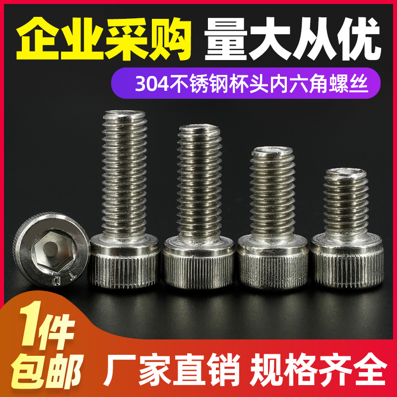 304 stainless steel cylindrical head hexagonal screw M4M5M6M8M10 screw cup head bolt machine screw DIN912