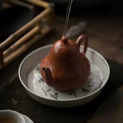 Yajitang General Qing style Ash blue and white handmade pot tea tray Tea tray Ancient poetry