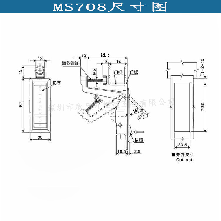 New Xin Daily Ascending Bounce Zinc Alloy Cabinet Lock 719 Lock Universal Mechanical Door Lock Distribution Box Plate Hand Lock MS708 Lock