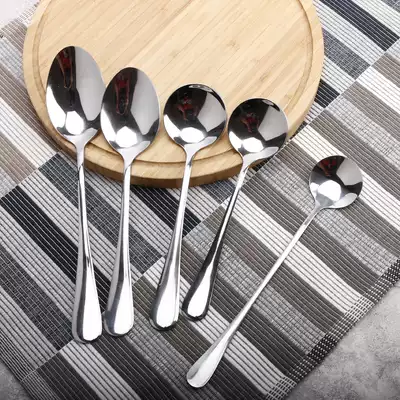 Stainless steel spoon thick Spoon children's creative soup spoon cute round spoon long handle coffee dessert mixing spoon long handle spoon