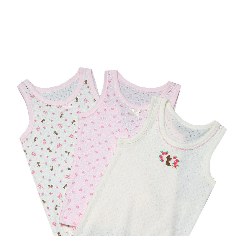 3 pieces of girls hollow pocket eye vest 3 pieces of children baby cotton hanging sleeveless bottom of the day system