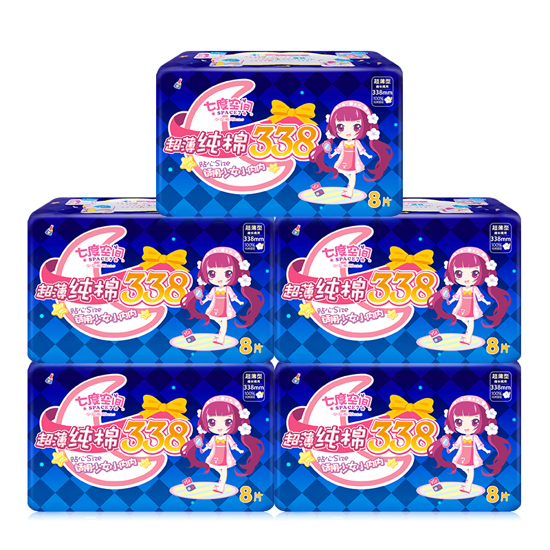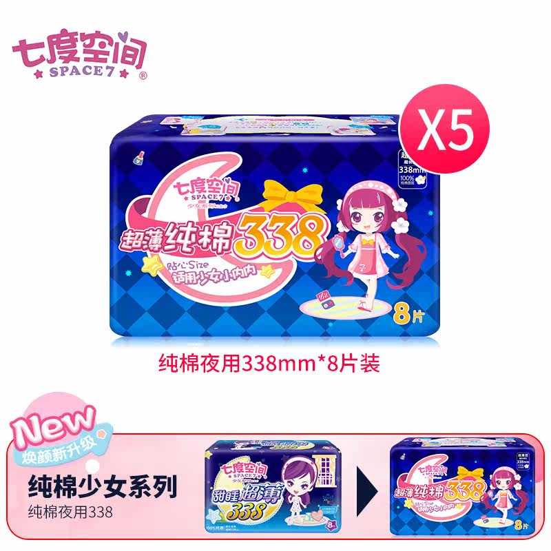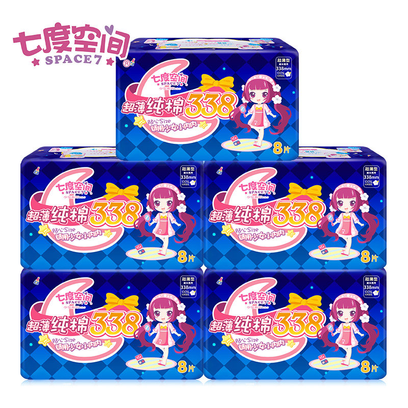 Seven-degree space sanitary cotton female extra-long night with 338mm sweet sleeping extra-long aunt towel combined whole box 8 pieces of clothing