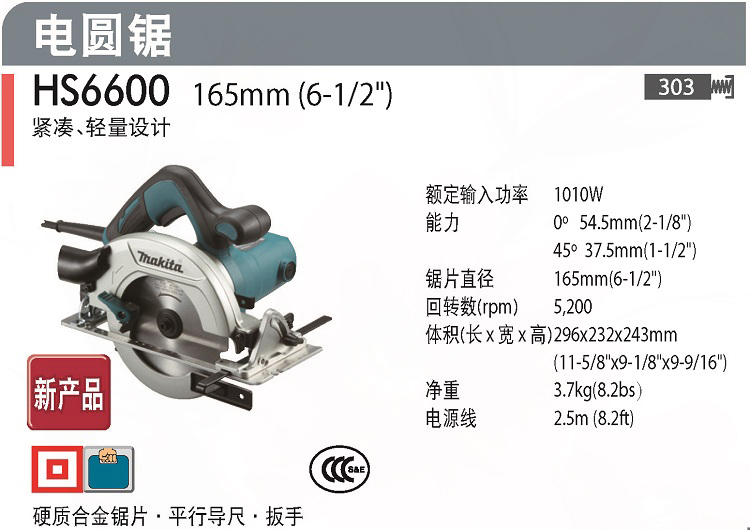 Makita rechargeable circular saw HS6600 portable saw 165mm woodworking disc saw wood cutting saw chainsaw