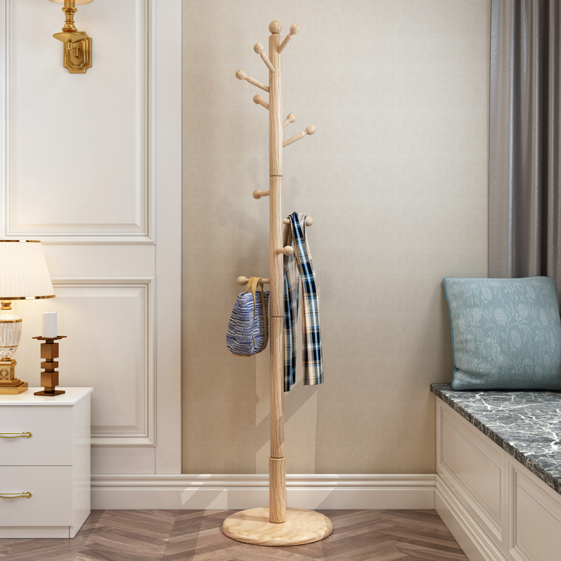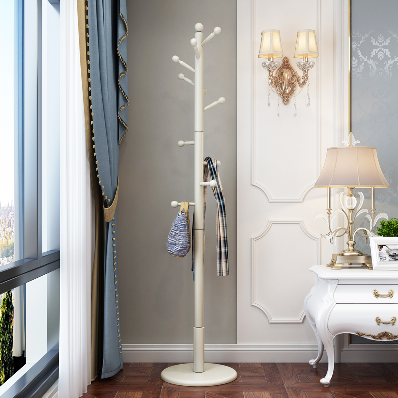 European solid wood coat rack Floor-to-ceiling hanger Foyer bedroom hanger Simple living room single rod household clothes rack