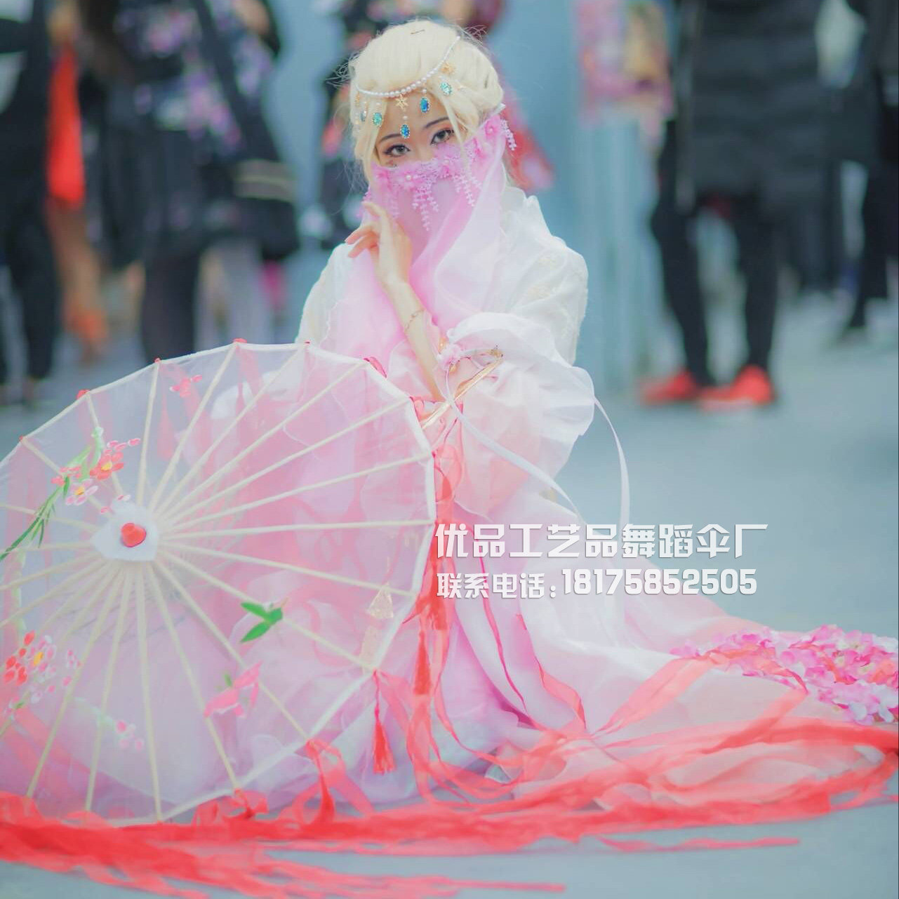 Big Red Umbrella Red Ribbon Red Tassel White Umbrella Pink Streamer Pink Tassel White Umbrella White Streamer Pink Tassel White Umbrella Purple Streamer Purple Tassel White Umbrella Red Streamer