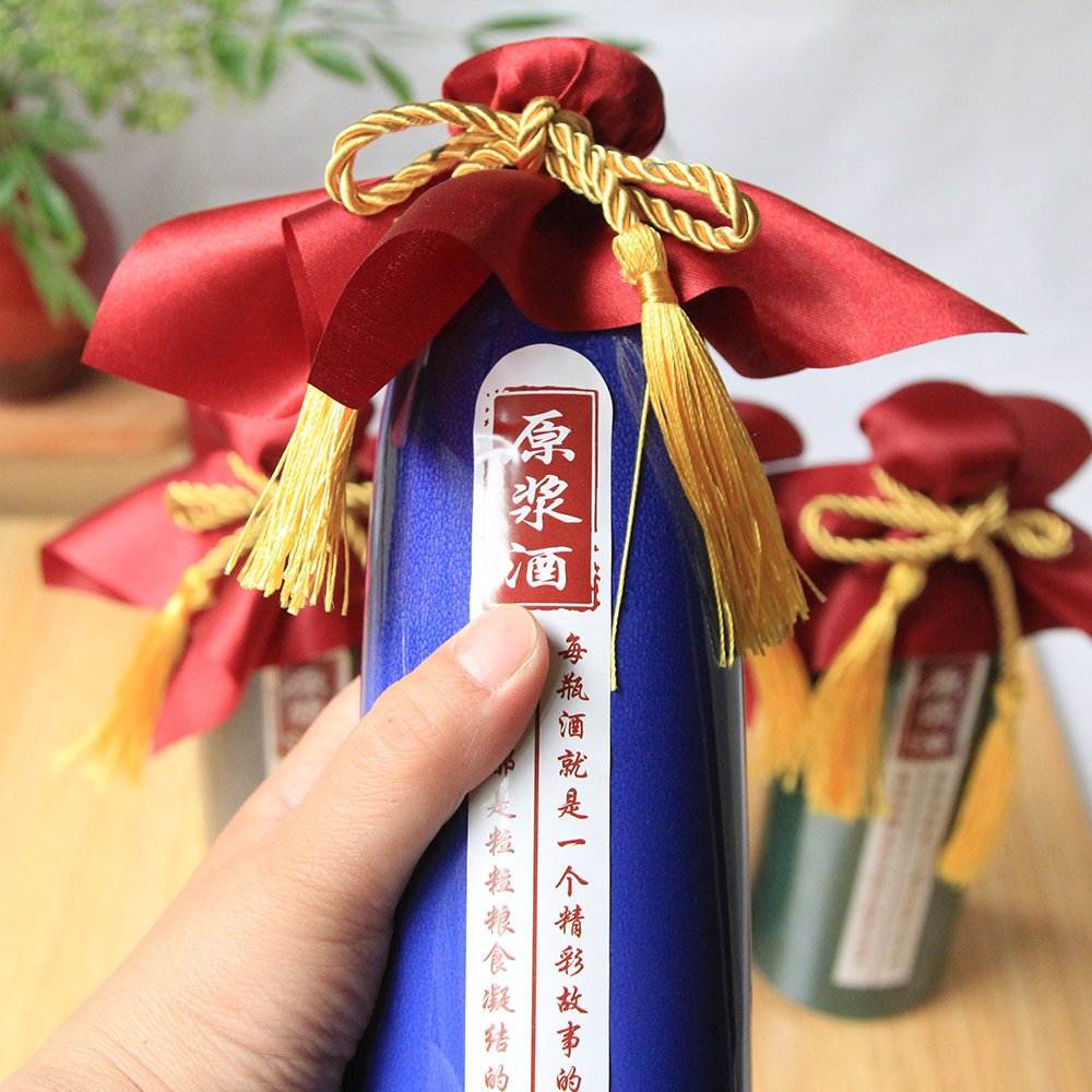 Auspicious red wine red cloth golden tassel auspicious gray wine red cloth golden tassel auspicious green wine red cloth golden tassel auspicious blue and white wine red cloth golden tassel
