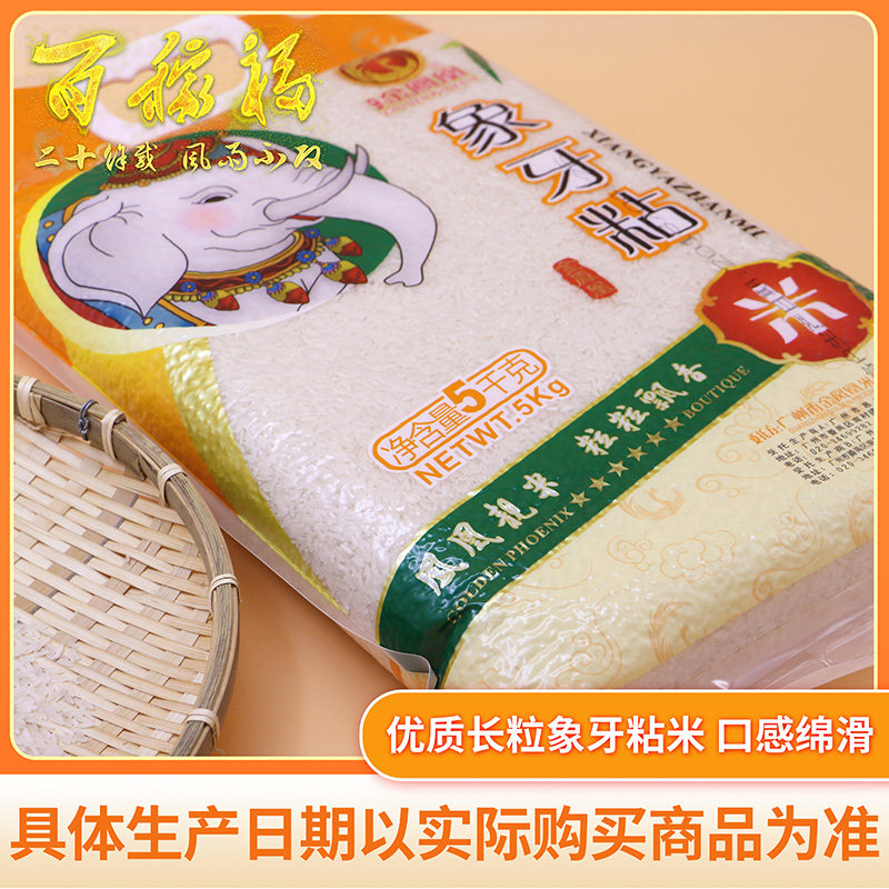 Golden Phoenix Ivory Sticky Rice 5KG Long Grain Long Grain Rice New Rice 10 Catty Rice Guangxi Rice Rice Pot rice Cantonese