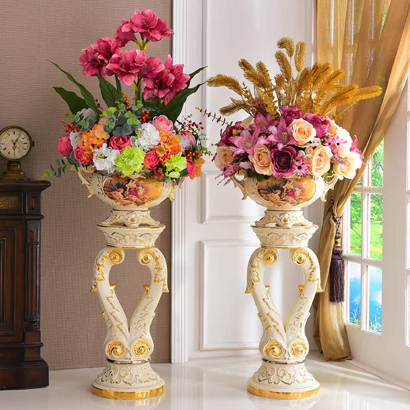 European vase ornaments Living room floor-to-ceiling flowers Large dried flowers flower arrangement simulation vase Ceramic home decorations