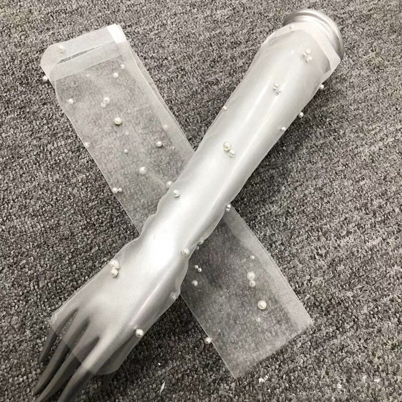Beautiful original bridal gloves Handmade beaded white plain yarn long sleeve wedding gloves cover arms in summer