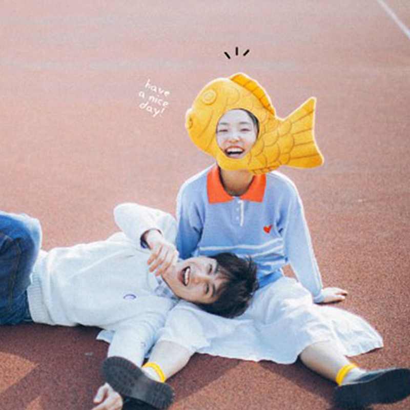 Day Series Lin Small Residence Co-style Carp Burning Headgear Creative Brigades to Blame Wedding photo lovers to write real photo props