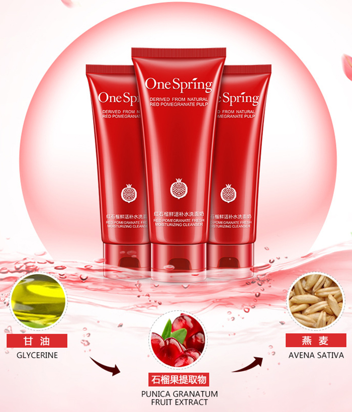 Automatic wholesale red pomegranate fresh water Moisturizing Facial Cleanser 100g