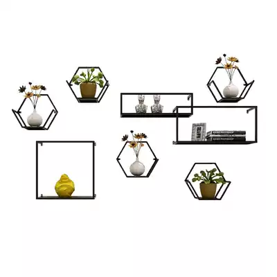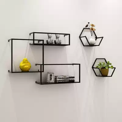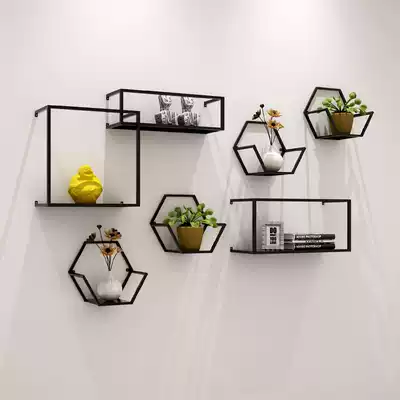 Nordic wall rack creative wrought iron wall hanging simple bookshelf partition wall decoration flower stand living room display rack