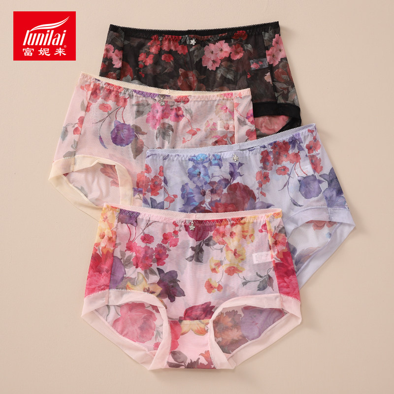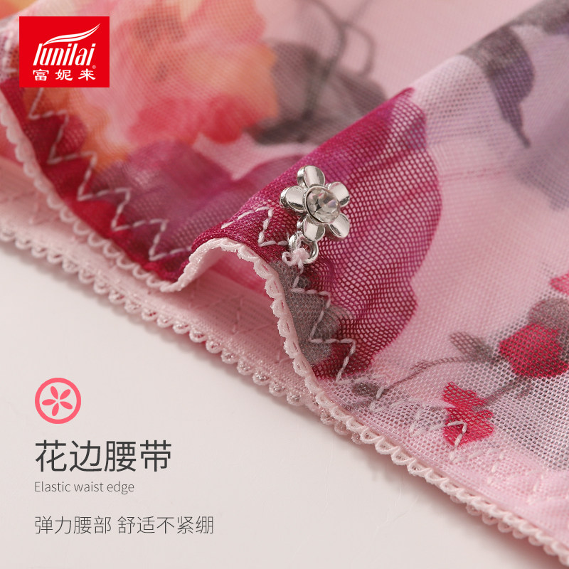 4 strips of Fanny to sexy female underpants Summer translucent mid-waist breathable pure cotton stalls No-scratches Large size underpants