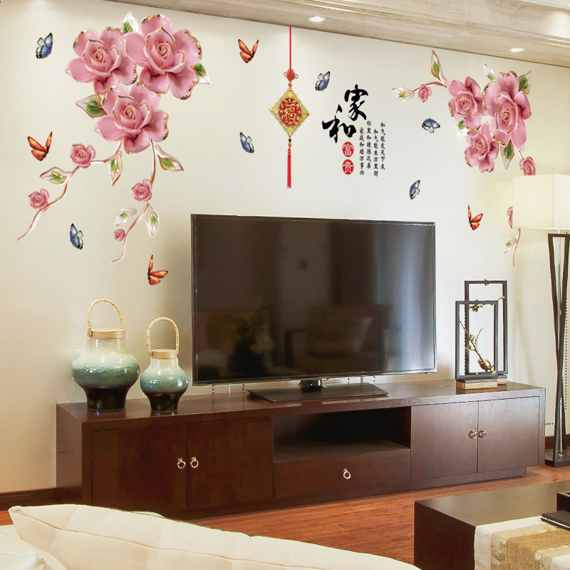 China Wind TV Background wall Living room wall New Year decorations stickers Dining Hall Bedroom Cozy Wall Stickler self-adhesive