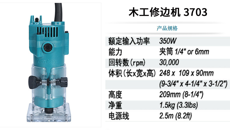Makita woodworking trimming machine 3703 woodworking engraving electromechanical wood milling small gong machine 1 4 knife handle drilling machine