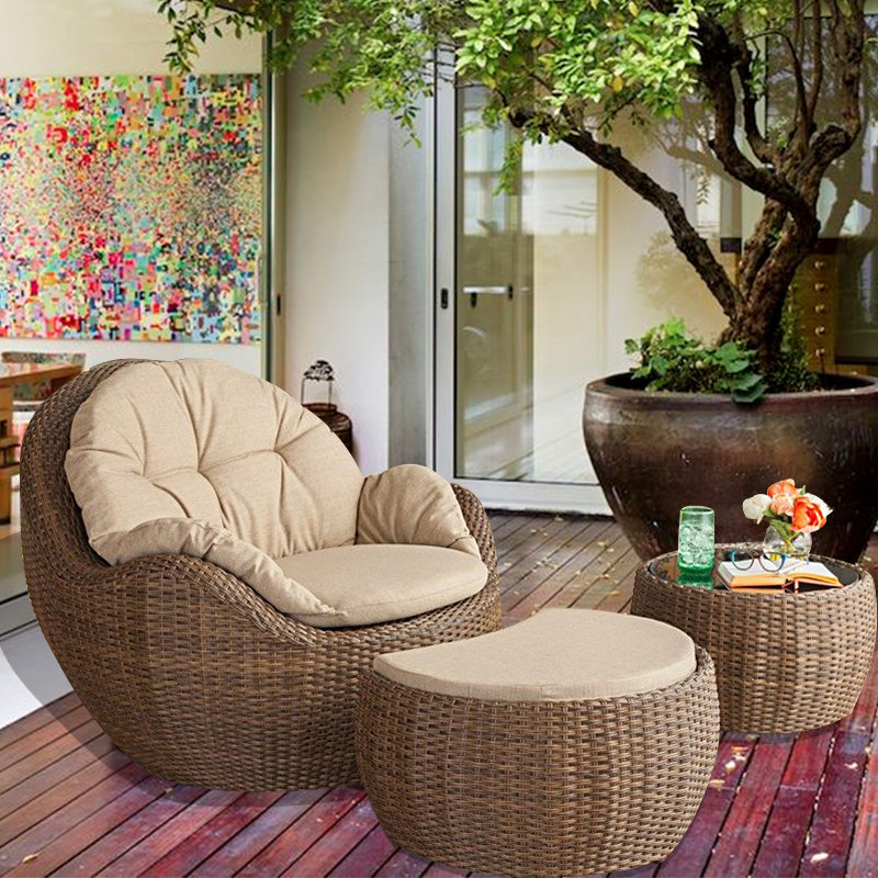 Outdoor Balcony table and chairs Three sets of rattan choreography outdoor sloths chaisans lounches casual round reclining rattan chair tea table combinations
