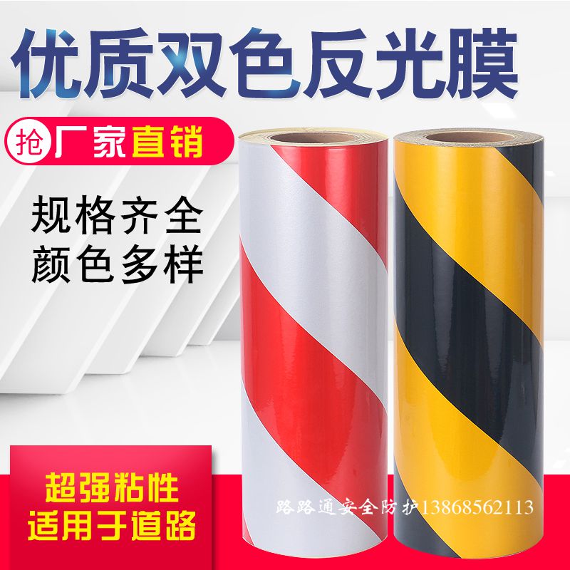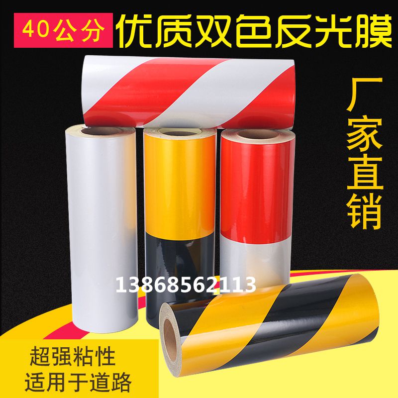 Red, white, yellow and black twill 40cm warning tape sticker road traffic anti-collision pole logo luminous reflective film
