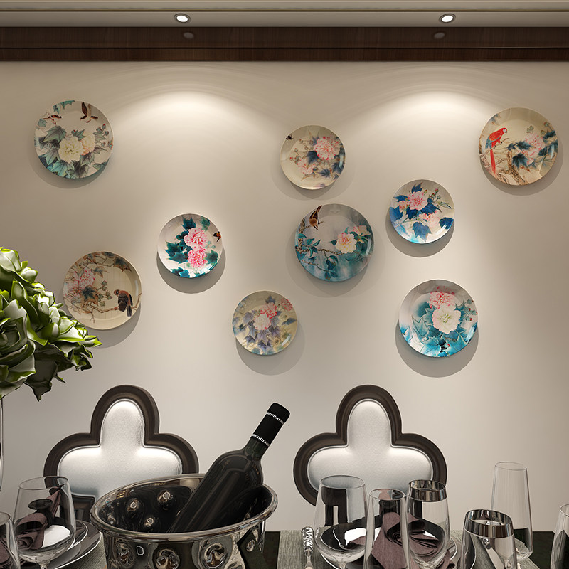 New Chinese Country Painting Flowers Hibiscus Flowers Bird Decorated Dishes Dining Room Sofa Background Wall Wall-mounted Pan Swing Tray