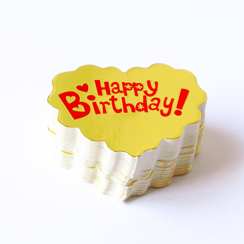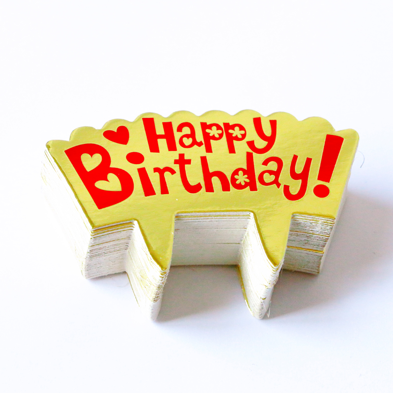 Bright reflective cake card Chinese and English happy birthday cake card, flag, bronzing card, 50 packs