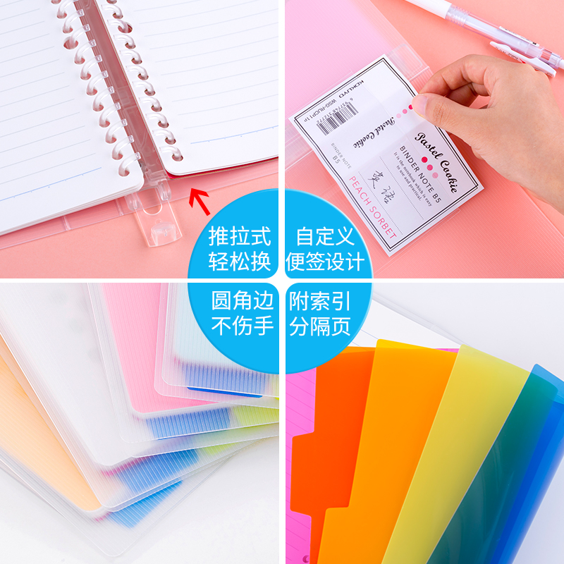 Japan Kokuyo loose-leaf plaid impression shell detachable college student A5B5A4 binder coil kokuyo light color cookie loose-leaf notebook sub-notepad large capacity for the core