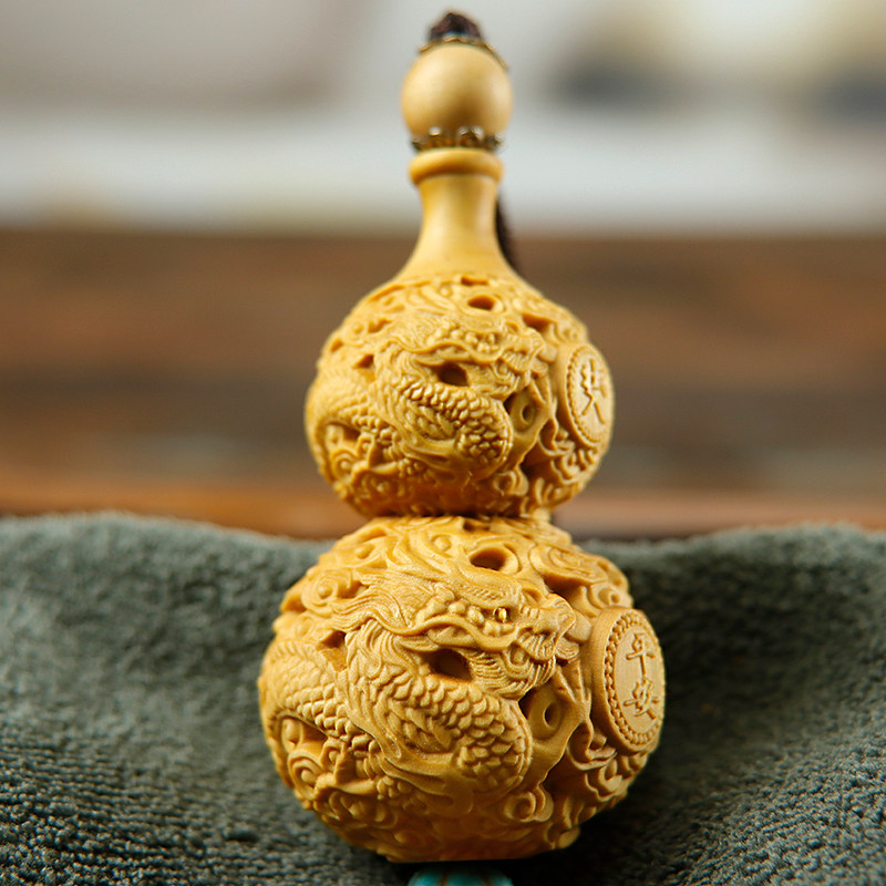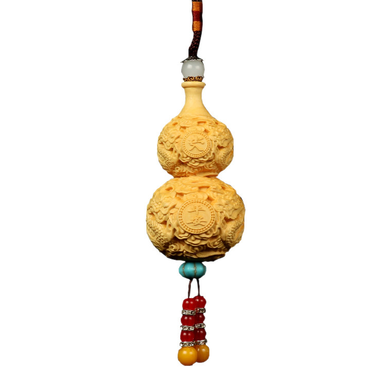 Yellow poplar wood carving handlebar piece gourd car pendant small ornament Wen playing Ping An Folu natural solid wood home hanging decoration