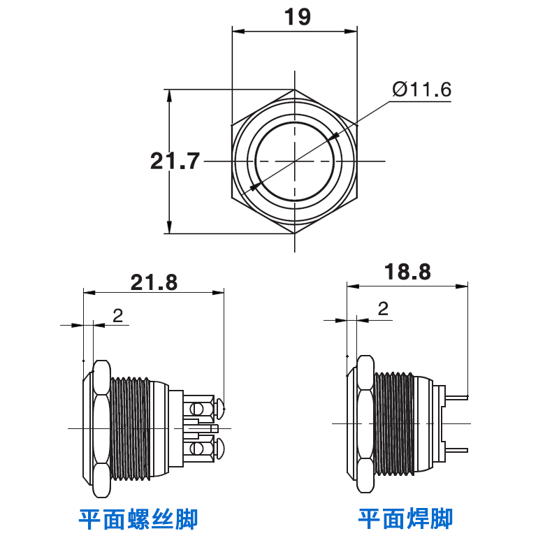 Metal button 16MM flat head high head arc welding wire screw foot waterproof switch self-reset EJ16-211
