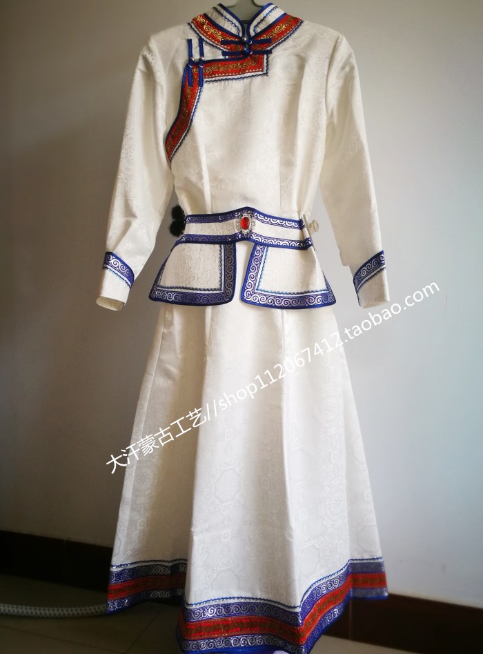Mongolian robe traditional adult long female robe minority clothing stage performance everyday women's dress white outfits-Taobao
