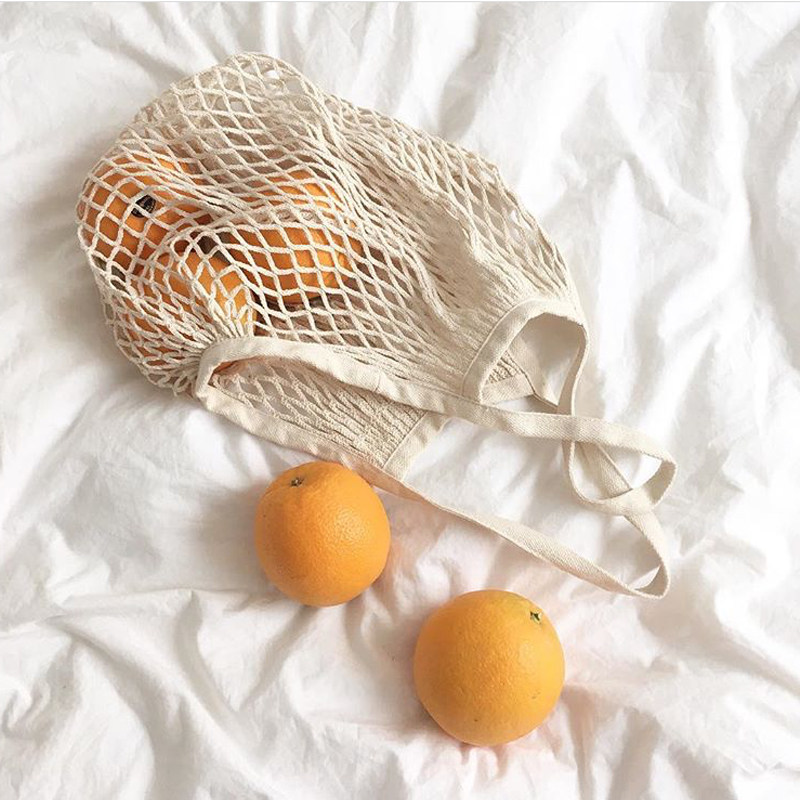 Korea ins net pocket hollowed-out fruit eco-friendly shopping bag woven handbag seaside holiday beach fishing nets bag