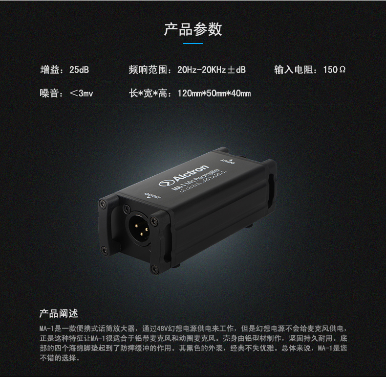 Alctron Aiketron MA-1 Moving Coil Microphone Passive Aluminum Band Microphone Net Gain Amplifier Speech Amplifier