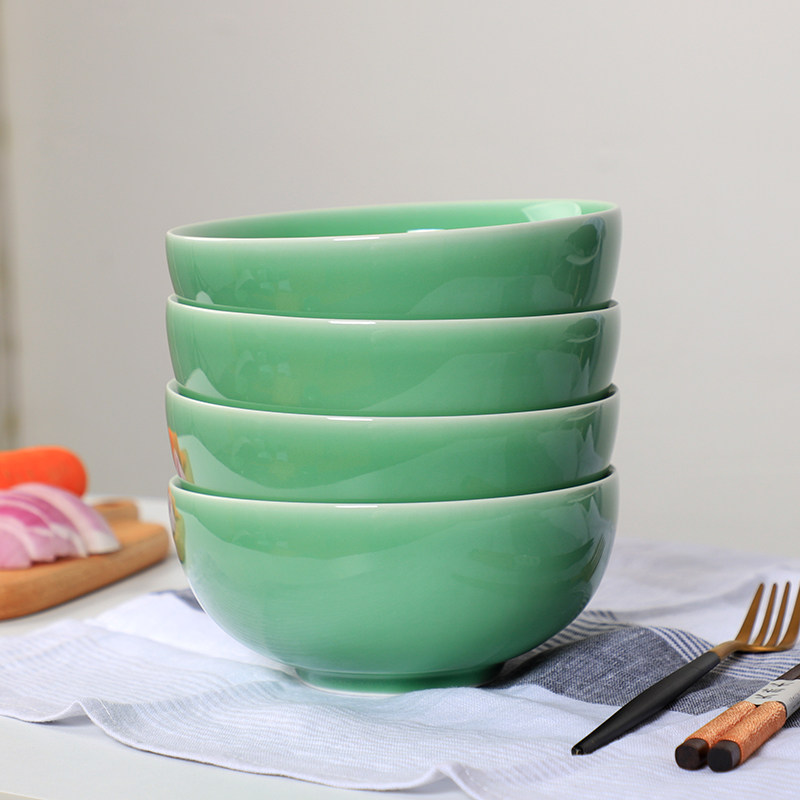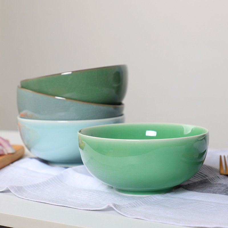 Ceramic noodle bowl household large Chinese ramen bowl Longquan celadon kiln ice crack instant noodle bowl creative salad bowl