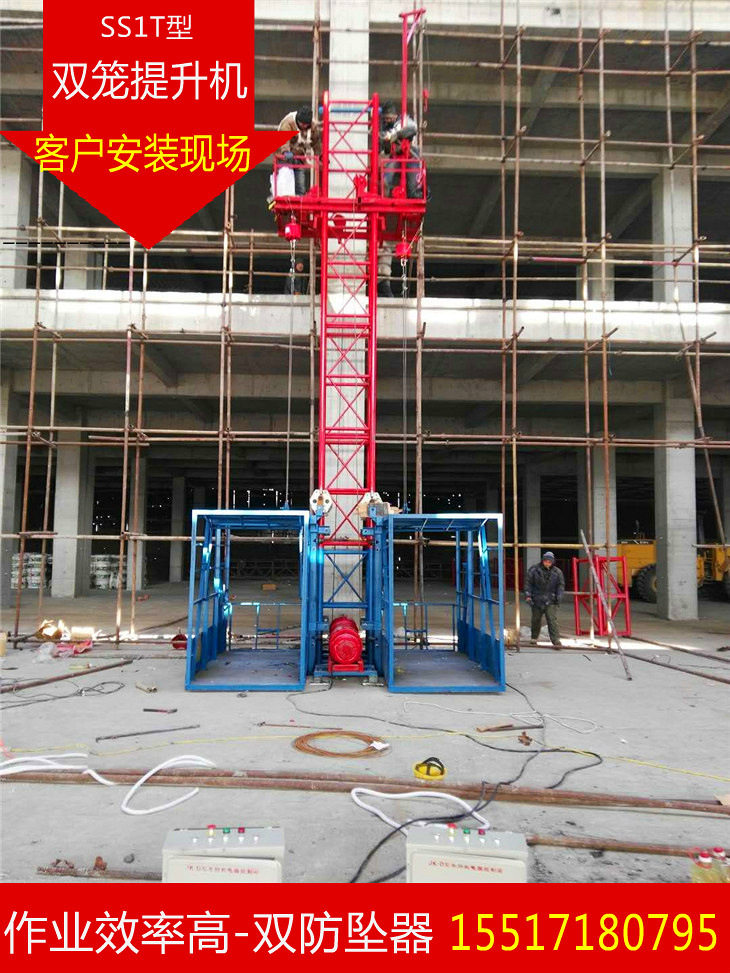 Construction Lift SS1T Type Construction Site Single Column Double Cage Furnishing Material Lifter Cover House Upside-down cargo machine anti-fall
