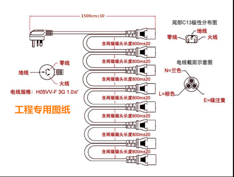 Desktop computer one point four power cord Multi-screen display one drag four power cord One point four room distribution power cord