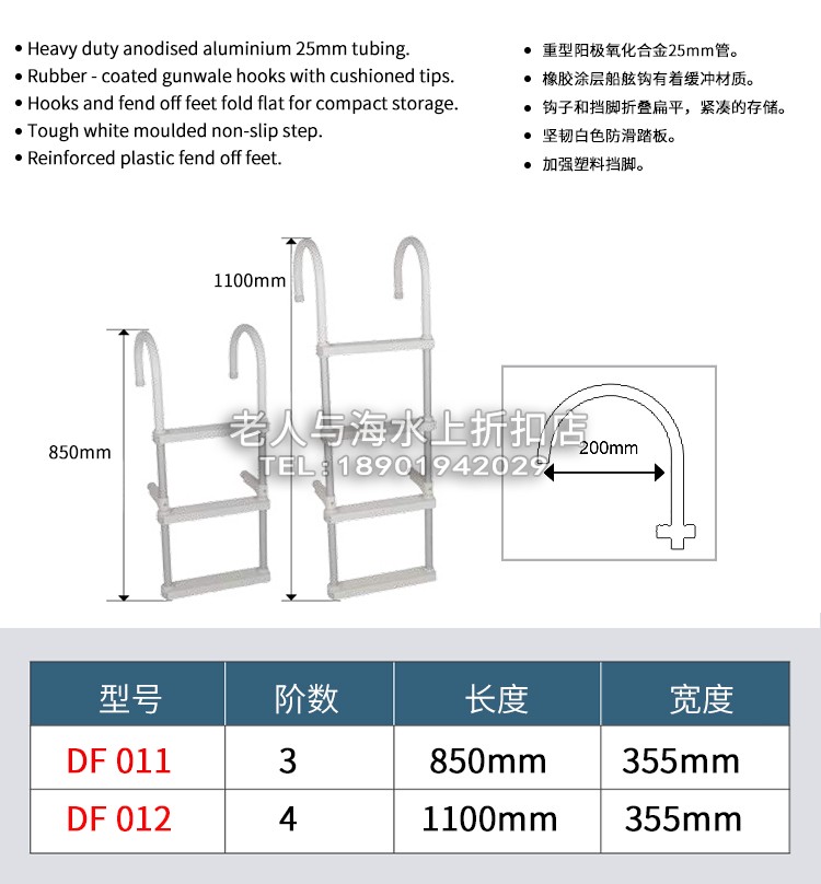 Flicker yacht fiberglass Luya fishing boat marine aluminum alloy boat ladder 34 steps