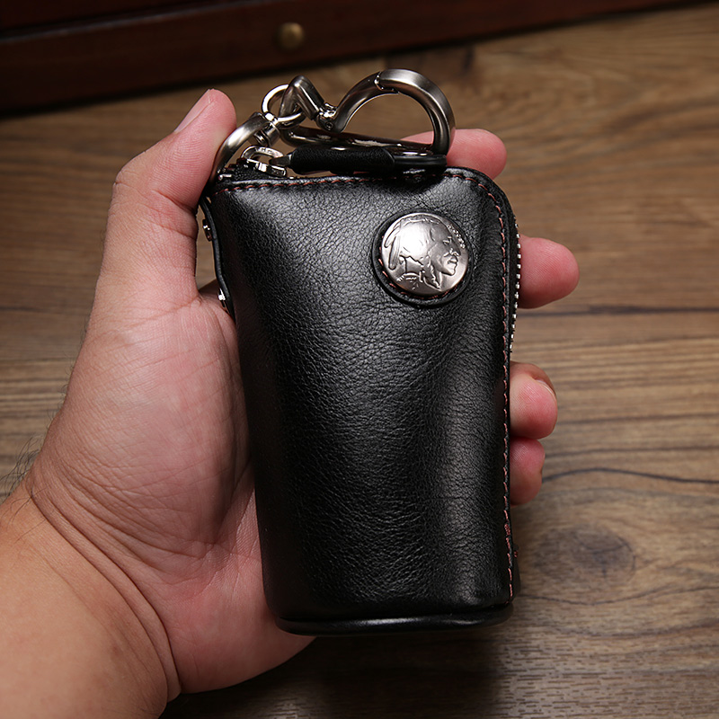 Retro male and female Genuine Leather Large Capacity Key Bag Laced Key Bag Head Layer Cow Leather Car Remote Control Bag card bag