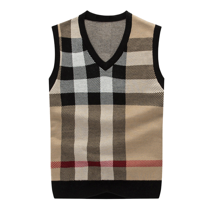 2021 spring and autumn new youth trend plaid sweater wool vest horse clip men's casual thickened knitted vest