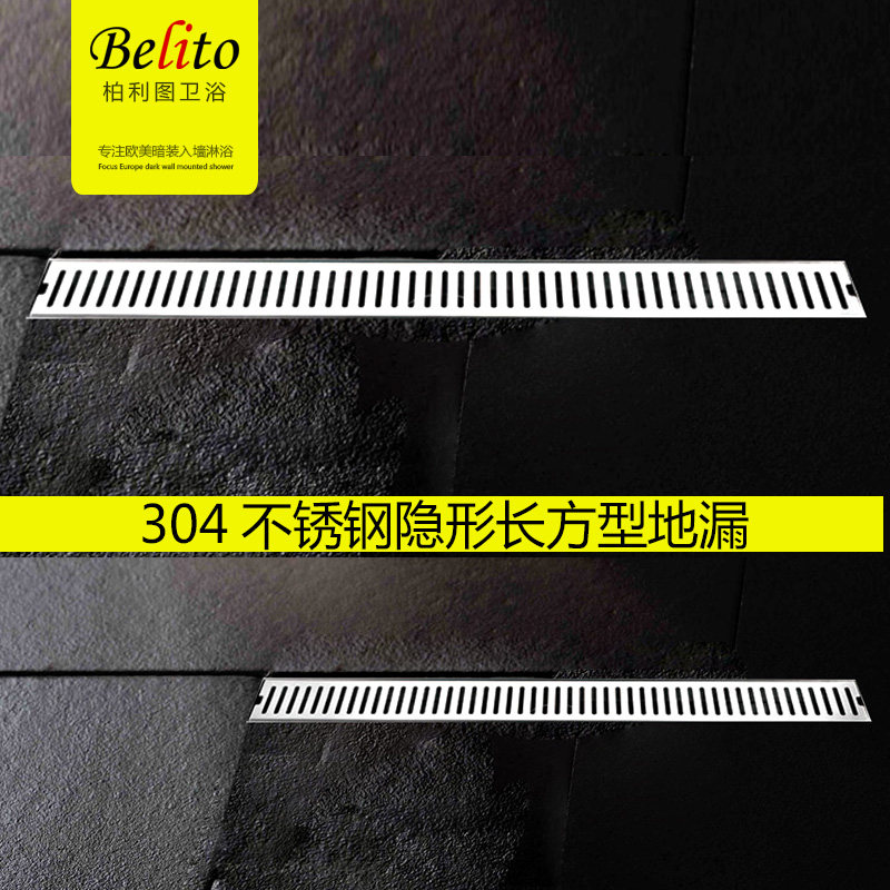 304 Stainless Steel Large Displacement Floor Drain Makeup Room Thickened Shower Room Deodorant Balcony Invisible Strip Square Floor Drain