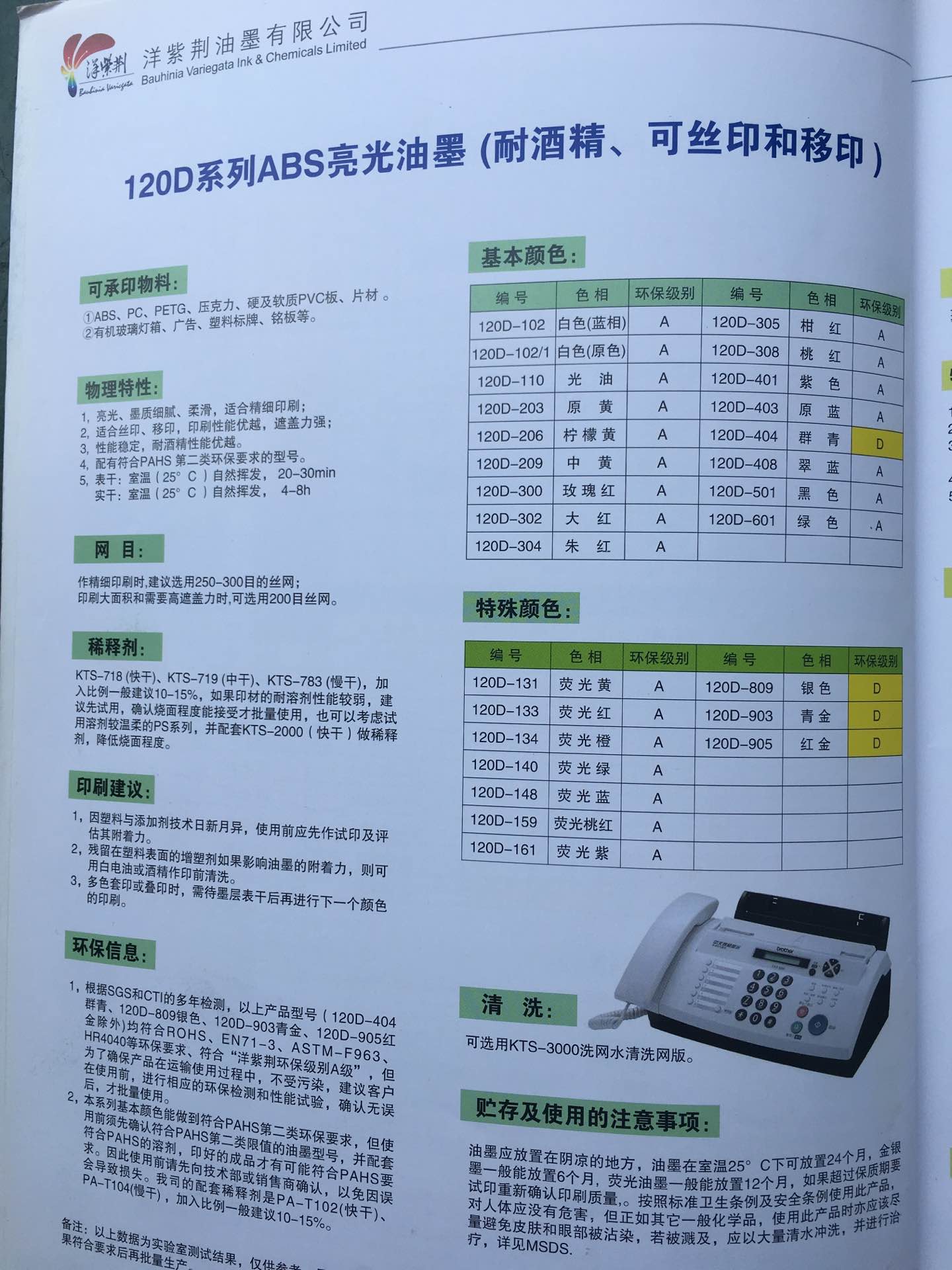Bauhinia 120D screen printing pad printing ink ABS acrylic PC plexiglass plastic alcohol resistant 102- white