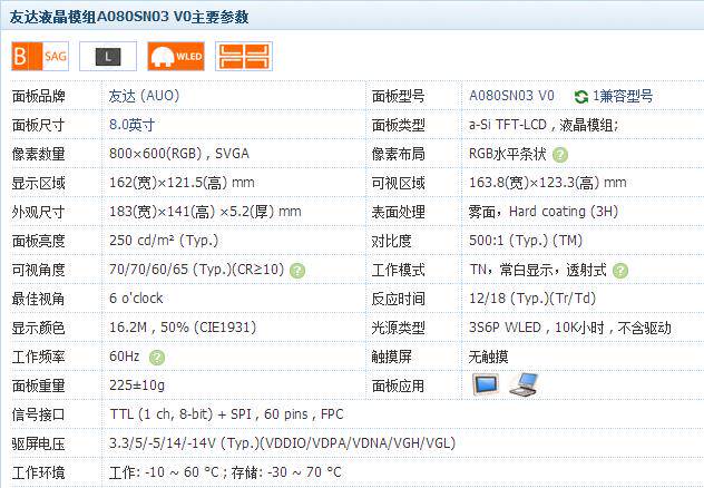 Original AUO 8 inch A080SN03 V 0 A080SN03 V 3 A080BN01 V 8 one year warranty