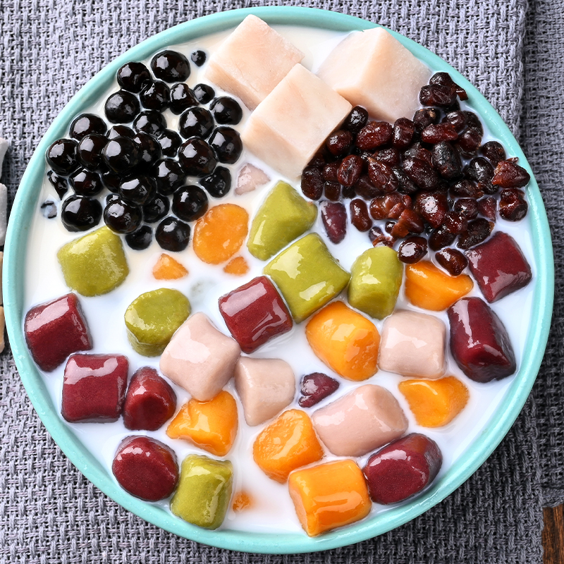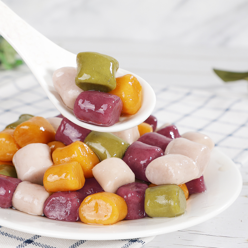 Purple potato, taro, sweet potato, green tea, tapioca starch, etc.