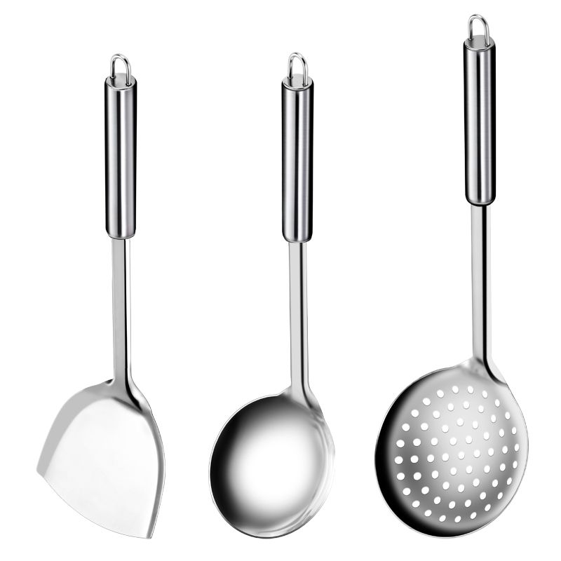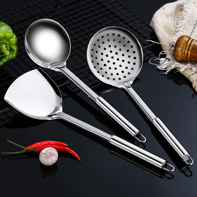 Steel Handle Big Soup Spoon Steel Handle Fried Shovel Tette Thick and large leaking spoon Special thick Fried Spade with large tablespoon of large soup ladle