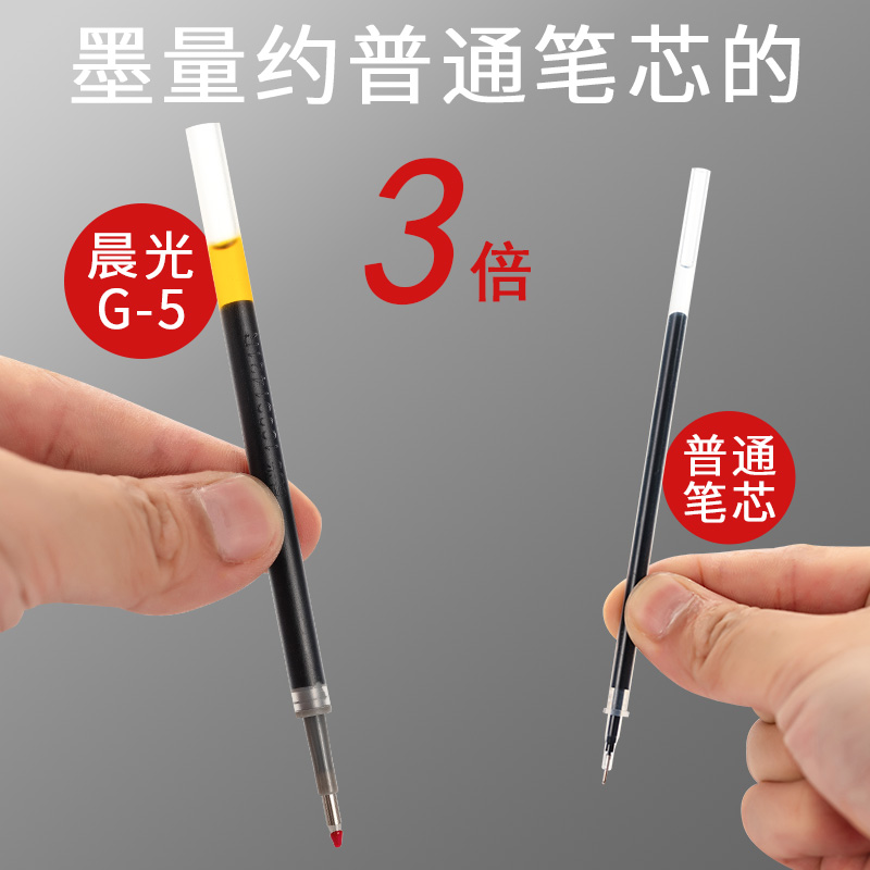 Morning light press refill g5 press unisex refill 0 5mm black bullet k35 for the core press type water-based pen thick tube large capacity g-5 students with exam red ink blue press office stationery