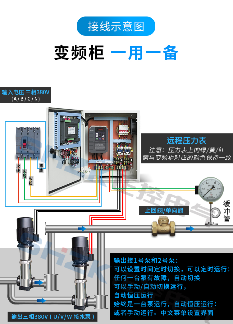 Frequency conversion constant pressure water supply control cabinet one drag two 1.5 2.2 3KW 4 7.5 11 15 pump one use one spare