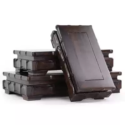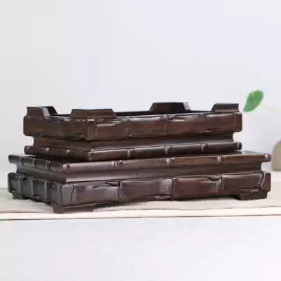 Mahogany ebony base Solid wood carving craft gift decoration Slub rectangular stone Qishi flower pot Buddha statue decoration base